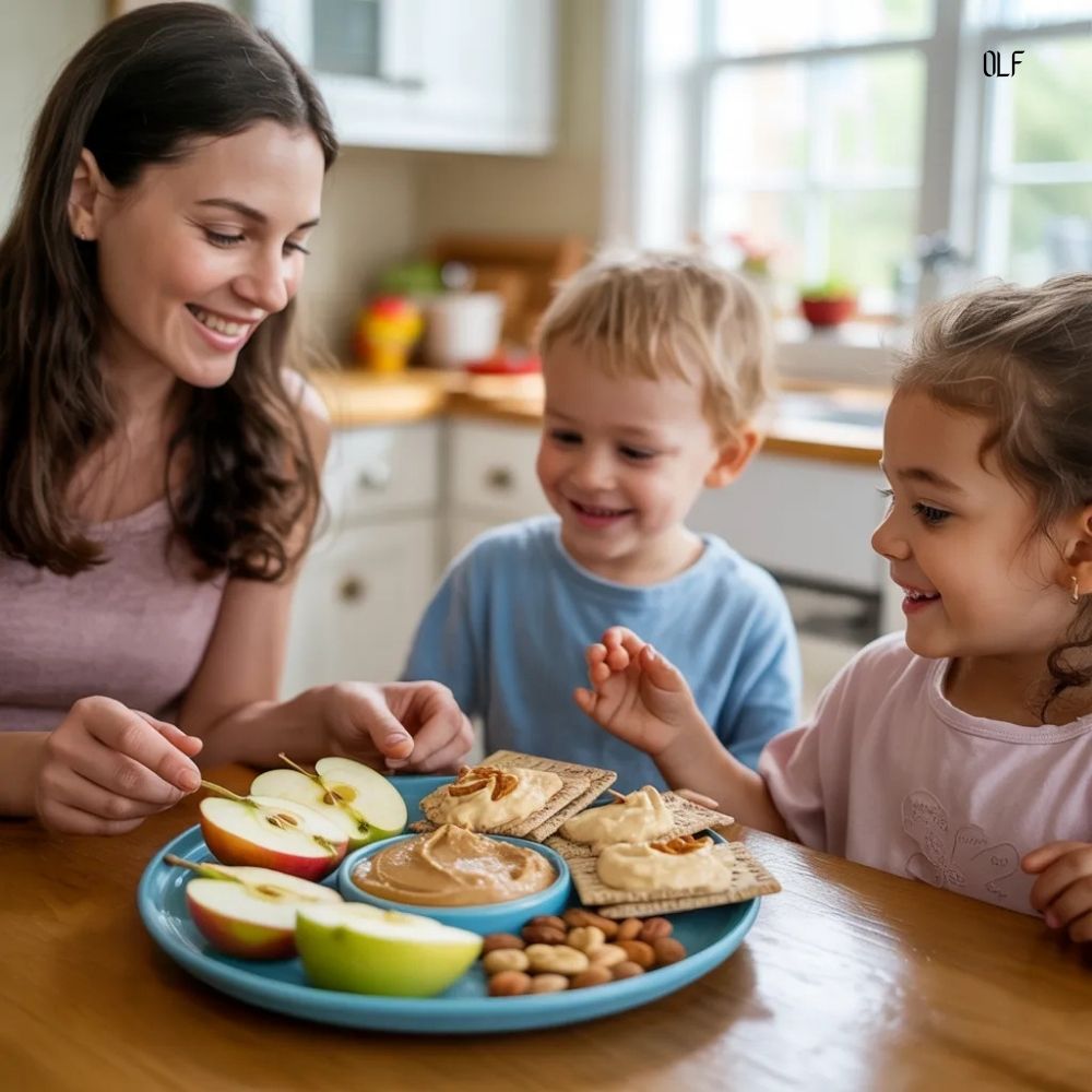 Serve the snack at a consistent location, preferably seated at the table. This is not a rushed handoff of food while a child runs past. It is a short pause that combines nourishment and connection.